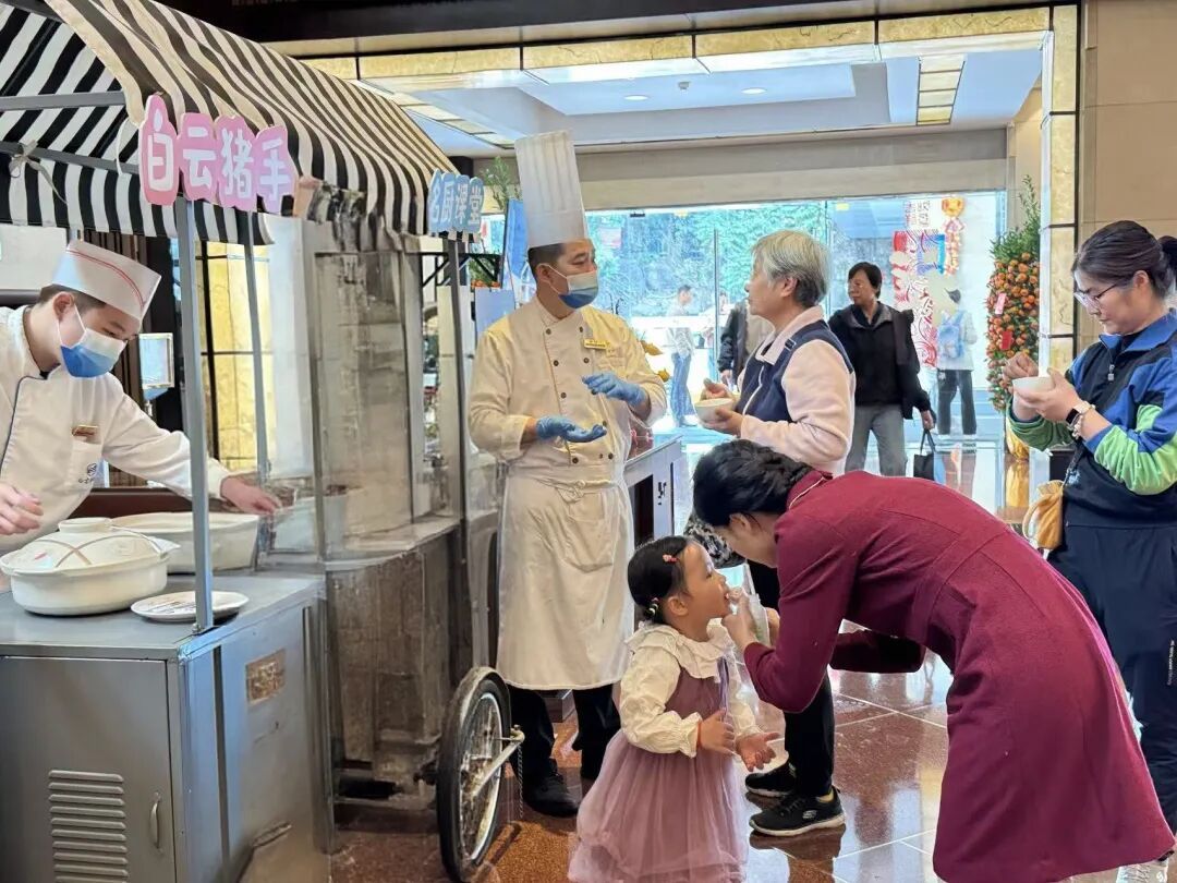 白云宾馆推出非遗课堂、粤味品鉴等系列活动,营造浓厚节日氛围;同时灵活盘活餐饮租户闲置包房、扩充餐位,提升服务品质,实现假期优质经营。