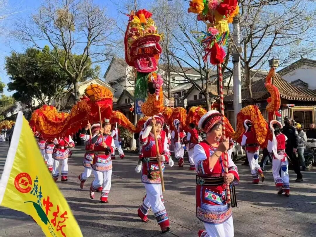 ▲广东中旅带领云南线路游客沉浸式感受当地春节舞龙民俗魅力