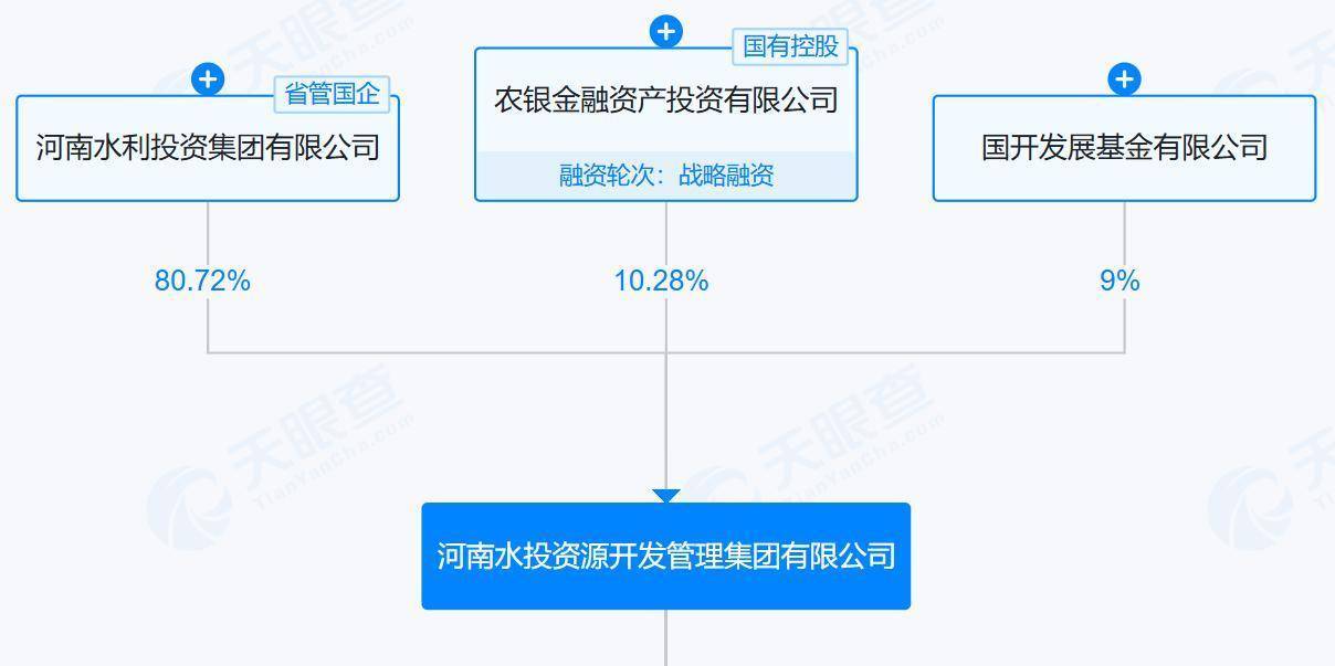 公开信息显示,河南水投资源开发管理集团有限公司 (曾用名:河南水投水土资源开发有限公司) ,成立于2011年,注册资本335212.87万元。该公司由河南水利投资集团持股80.72%,农银金融资产投资有限公司持股10.28%,国开发展基金有限公司持股9%。