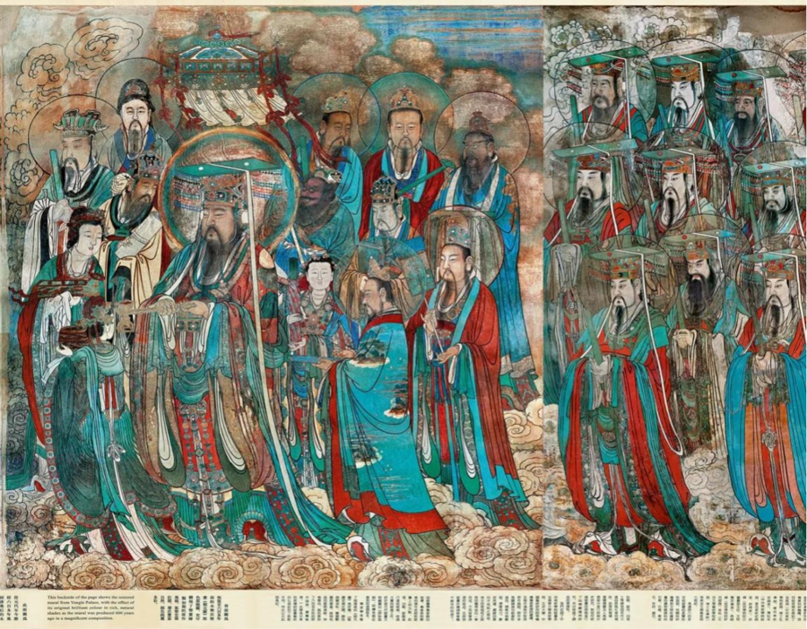 永乐宫自1247年始建,历时111年方才竣工,是国家首批重点文物保护单位。宫内现存元代壁画达1005.68平方米,其中艺术成就最高的当属三清殿内的《朝元图》。《朝元图》长97米、高4.4米,描绘道家诸神朝拜元始天尊的盛大场景。