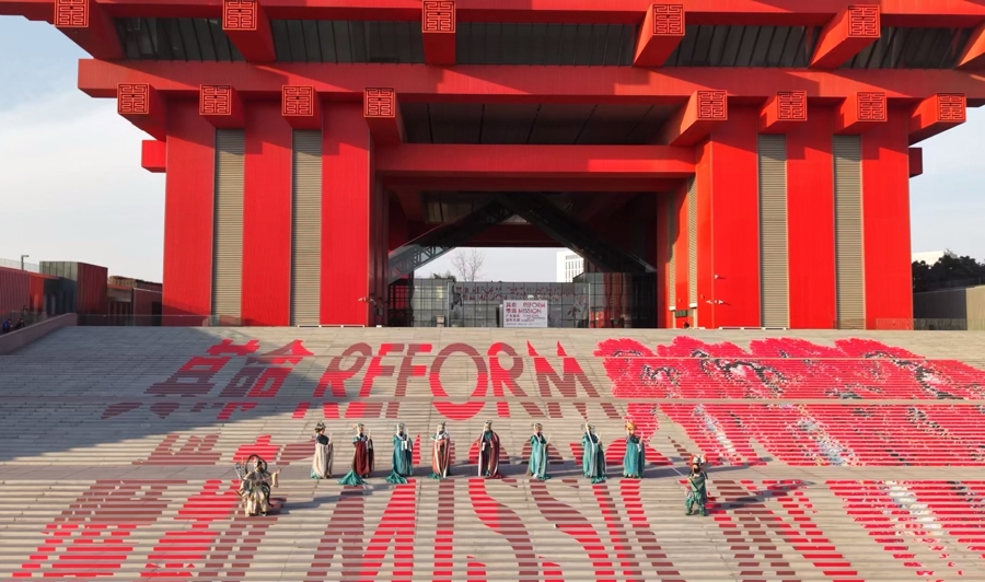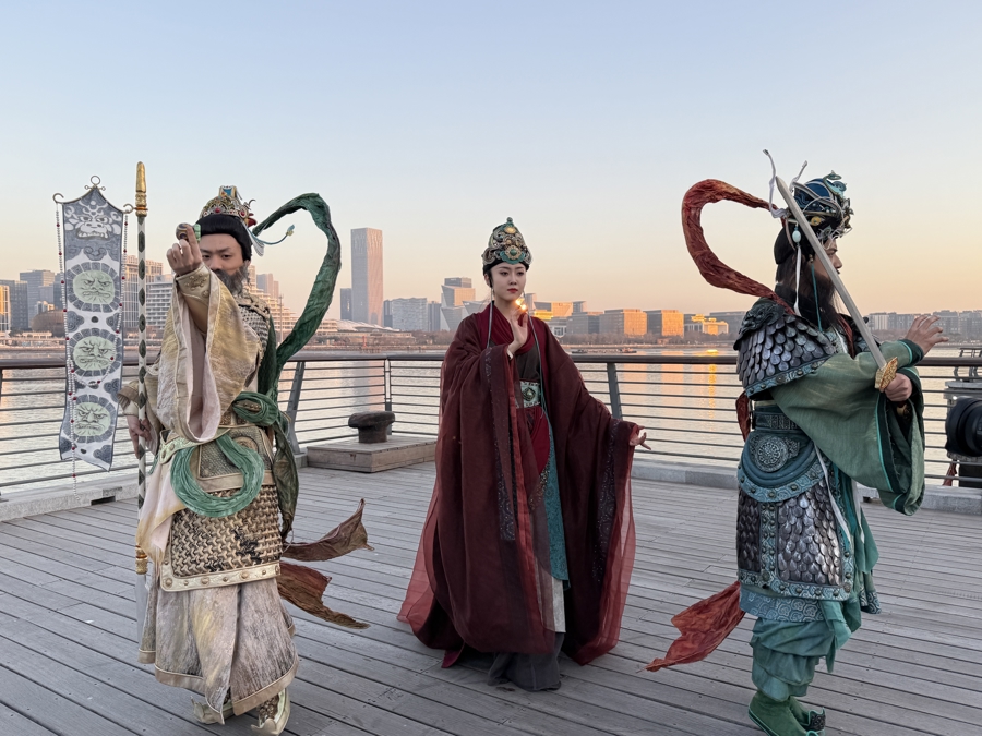元代永乐宫壁画《朝元图》神仙在中华艺术宫、徐汇西岸梦中心·船坞剧场、豫园翩迁起舞,打破剧场边界,走进上海城市地标。1月14日,舞剧《永乐未央》跨越时空的文化快闪点亮申城,将山西芮城永乐宫带到上海观众面前。1月16日-17日,中国东方演艺集团舞剧《永乐未央》将在上海西岸大剧院连演两场。